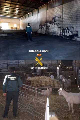 La rápida actuación de agentes de la Guardia Civil que patrullaban la zona permitió salvar la vida a 165 animales --entre ovejas, cabras y perros-- que habían quedado dentro de una nave a la que habían prendido fuego en La Zarza (Badajoz).
