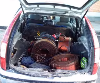 Tras interceptar el mismo, se inspeccionó el vehículo y se observó en su interior diversas bobinas de hilo de cobre, tres de ellas de grandes dimensiones, cuyos ocupantes no pudieron acreditar la lícita procedencia del material.
