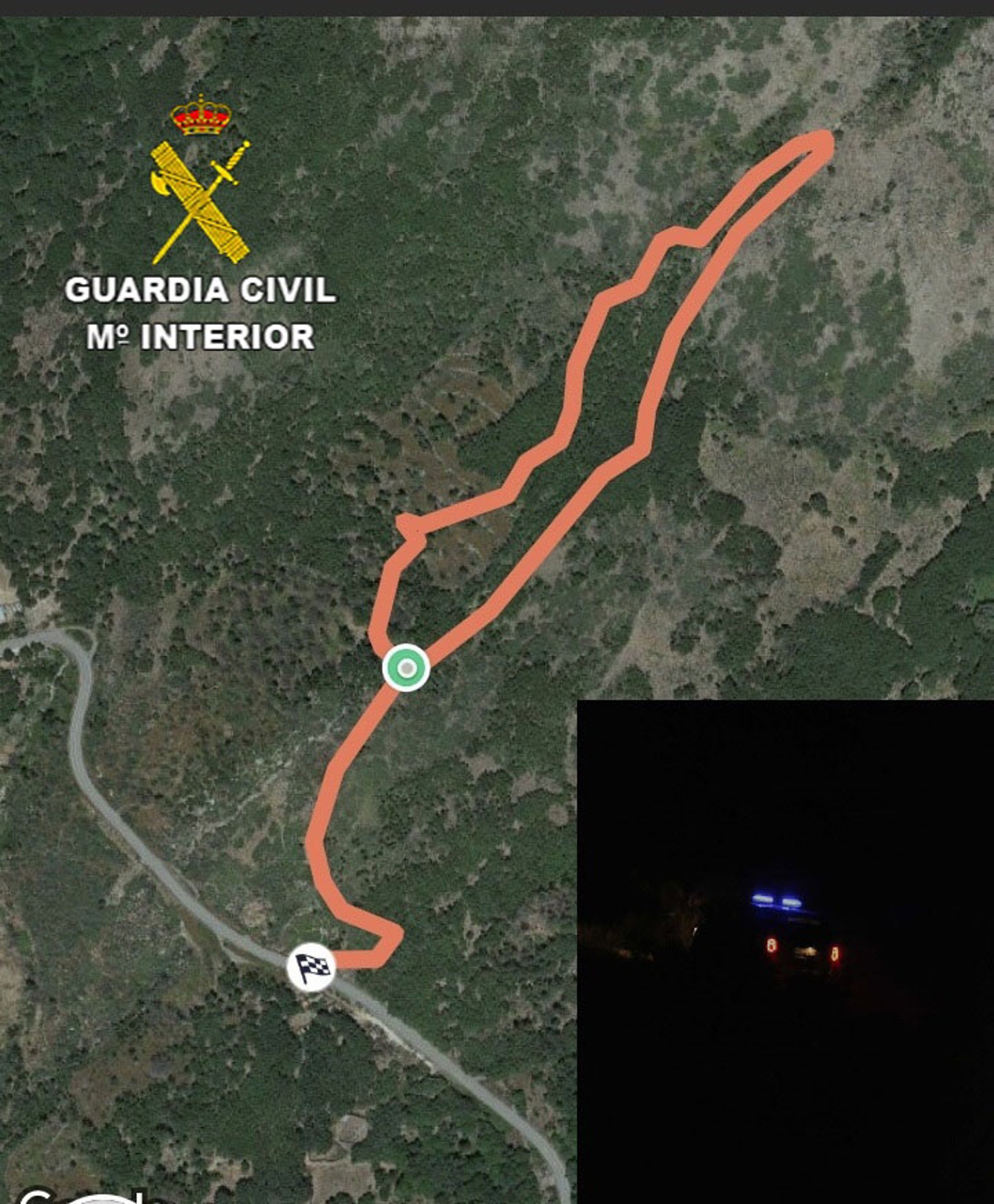 En ese momento se activó un dispositivo de emergencia con varias patrullas, pero fue la del Puesto de Valverde del Fresno, más conocedora del terreno, la que a las 22,15 horas, decide subir por una de las vías de comunicación que transcurre por el monte Jálama, ya que es ahí donde se inicia una de las rutas senderistas más habituales, y a media falta de citado monte vieron una pequeña luz.