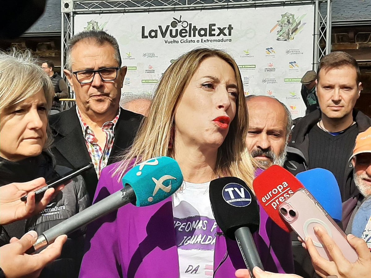 La presidenta de la Junta de Extremadura, María Guardiola, atiende a los medios de comunicación - EUROPA PRESS