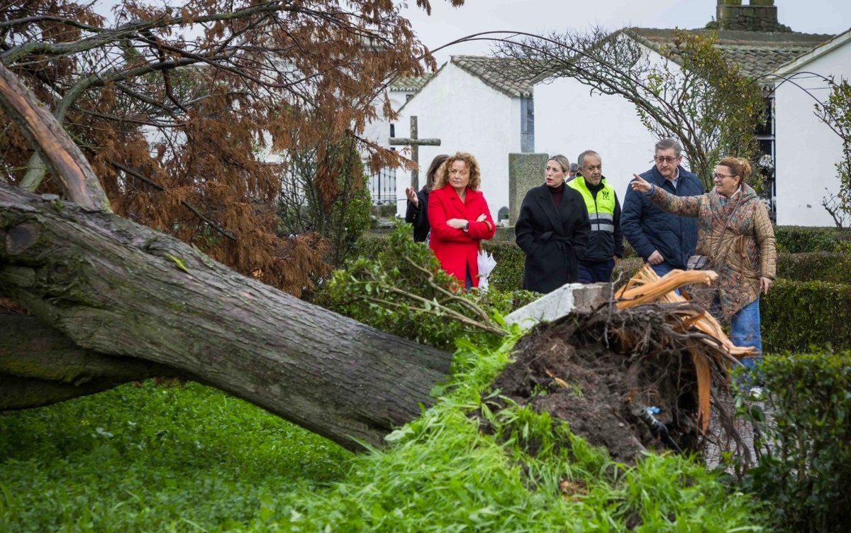La presidenta de la Junta de Extremadura en funciones, María Guardiola, ha visitado este jueves Brozas (Cáceres) para conocer los daños causados en el municipio tras el paso de la borrasca Kristin.