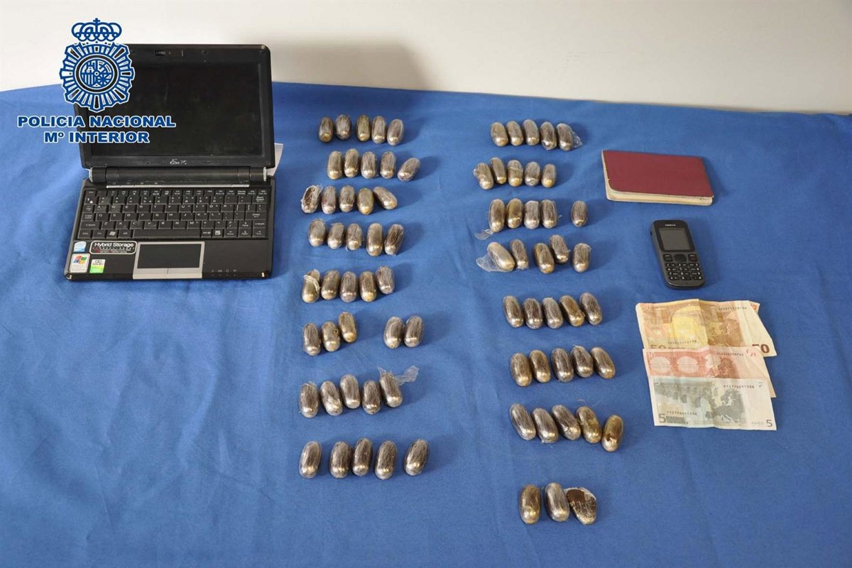 Según informa la policía en una nota de prensa, junto a las 'bellotas', que arrojaron un peso de 786 gramos, han sido incautados un ordenador portátil, un teléfono móvil, documentación personal y dinero en efectivo.