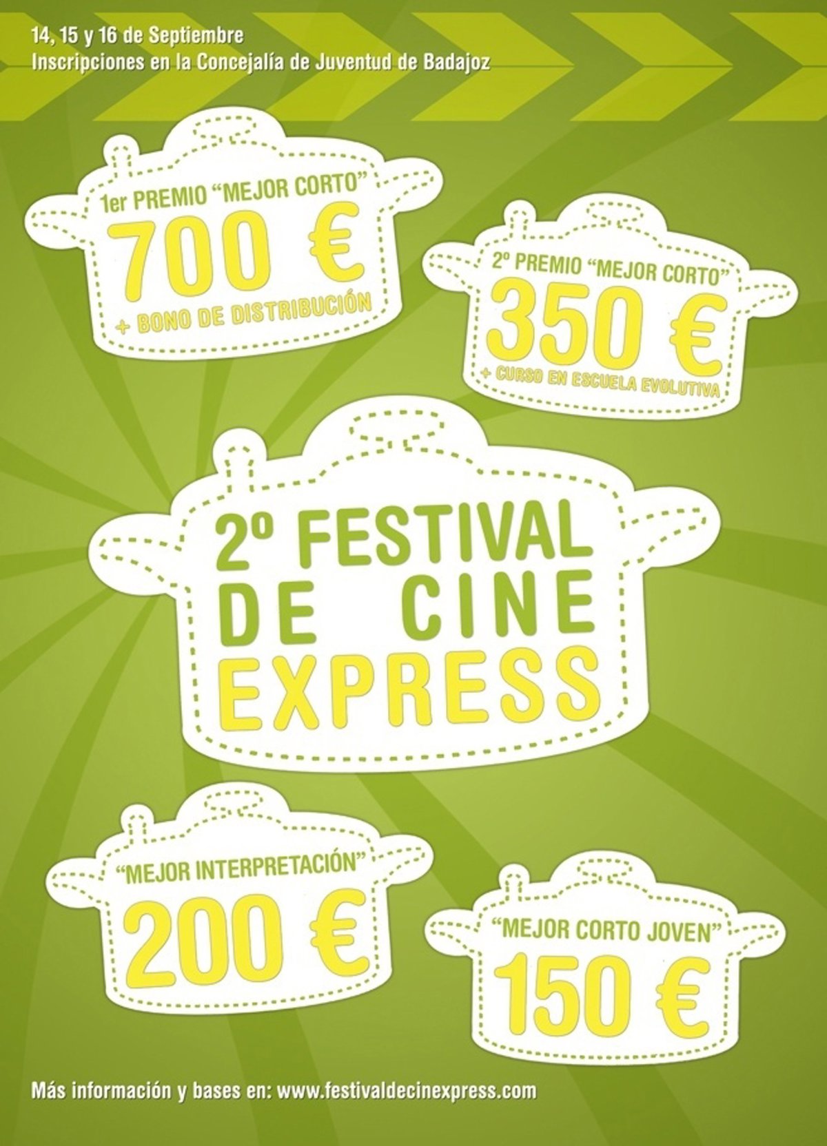 La segunda edición del Festival de Cinexpress 'Ciudad de Badajoz' se celebrará del 14 al 16 de este mes de septiembre en la capital pacense.