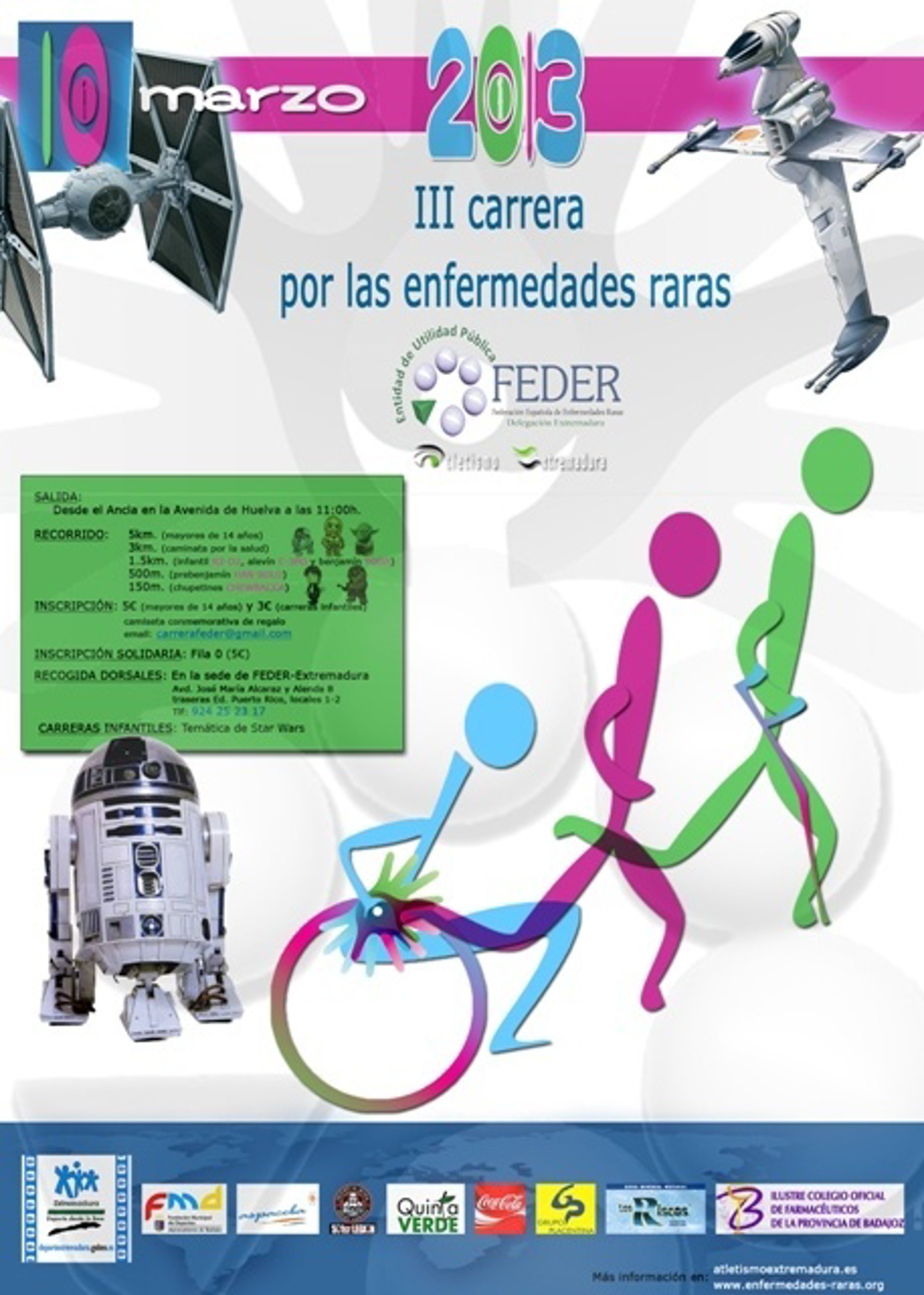 La III Carrera-Caminata Solidaria por la Enfermedades Raras, que se celebrará el próximo domingo, día 10, por las calles de Badajoz, estará dedicada a la saga 'Stars Wars'.