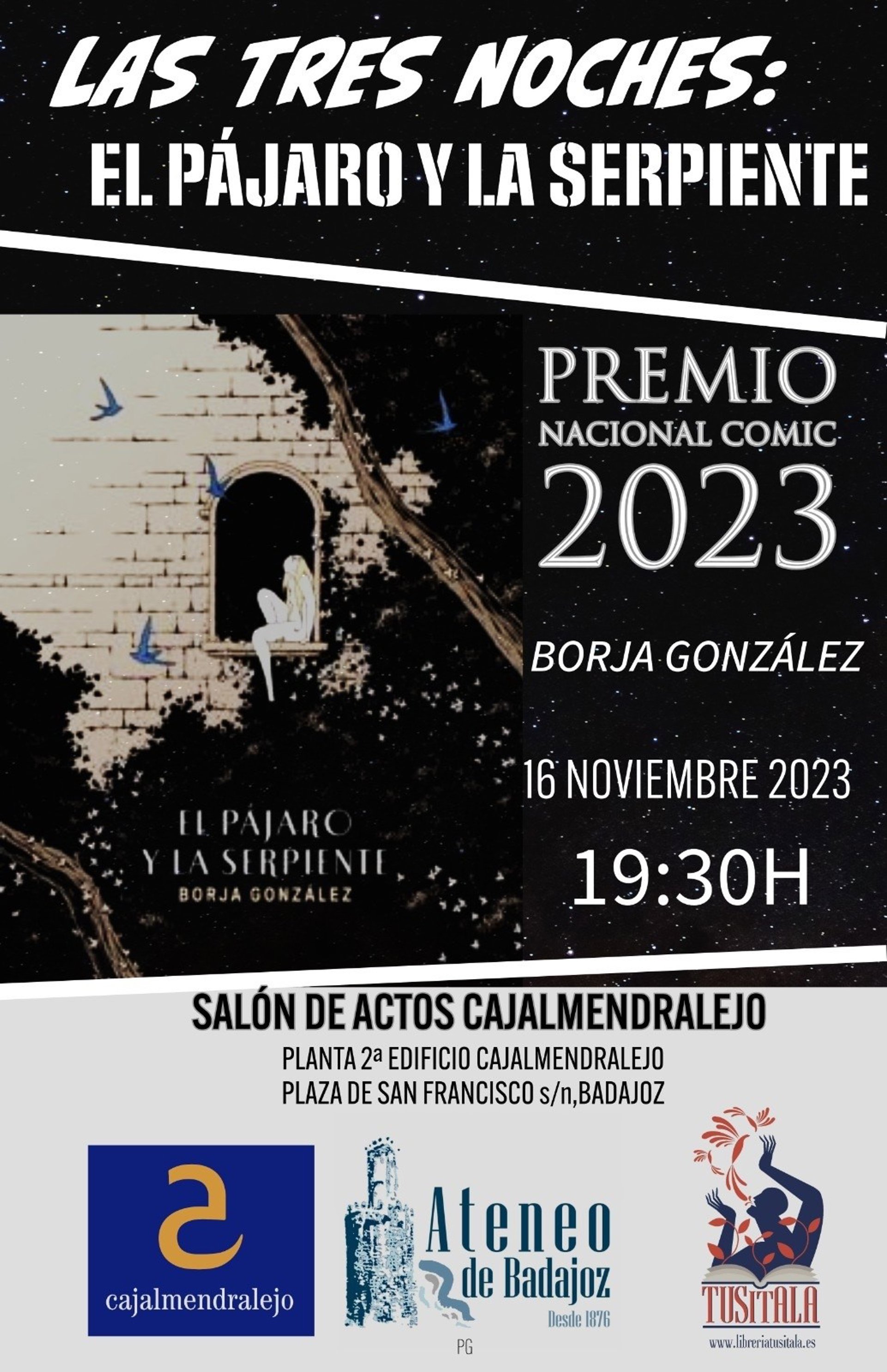 El historietista e ilustrador pacense que ganó el Premio Nacional del Cómic 2023 presentará su último trabajo titulado 'El pájaro y la serpiente' en un encuentro que tendrá lugar el jueves 16 de noviembre, a las 19,30 horas, en el edificio de Caja Almendralejo, ubicado en la plaza de San Francisco de Badajoz.