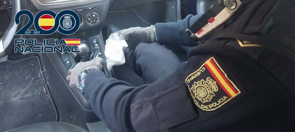 Ante dicha maniobra los agentes identificaron a los dos ocupantes del coche e inspeccionaron el vehículo, donde, en un hueco fuera de la vista, localizaron una bolsa de plástico transparente con cocaína, por lo que fueron detenidos.