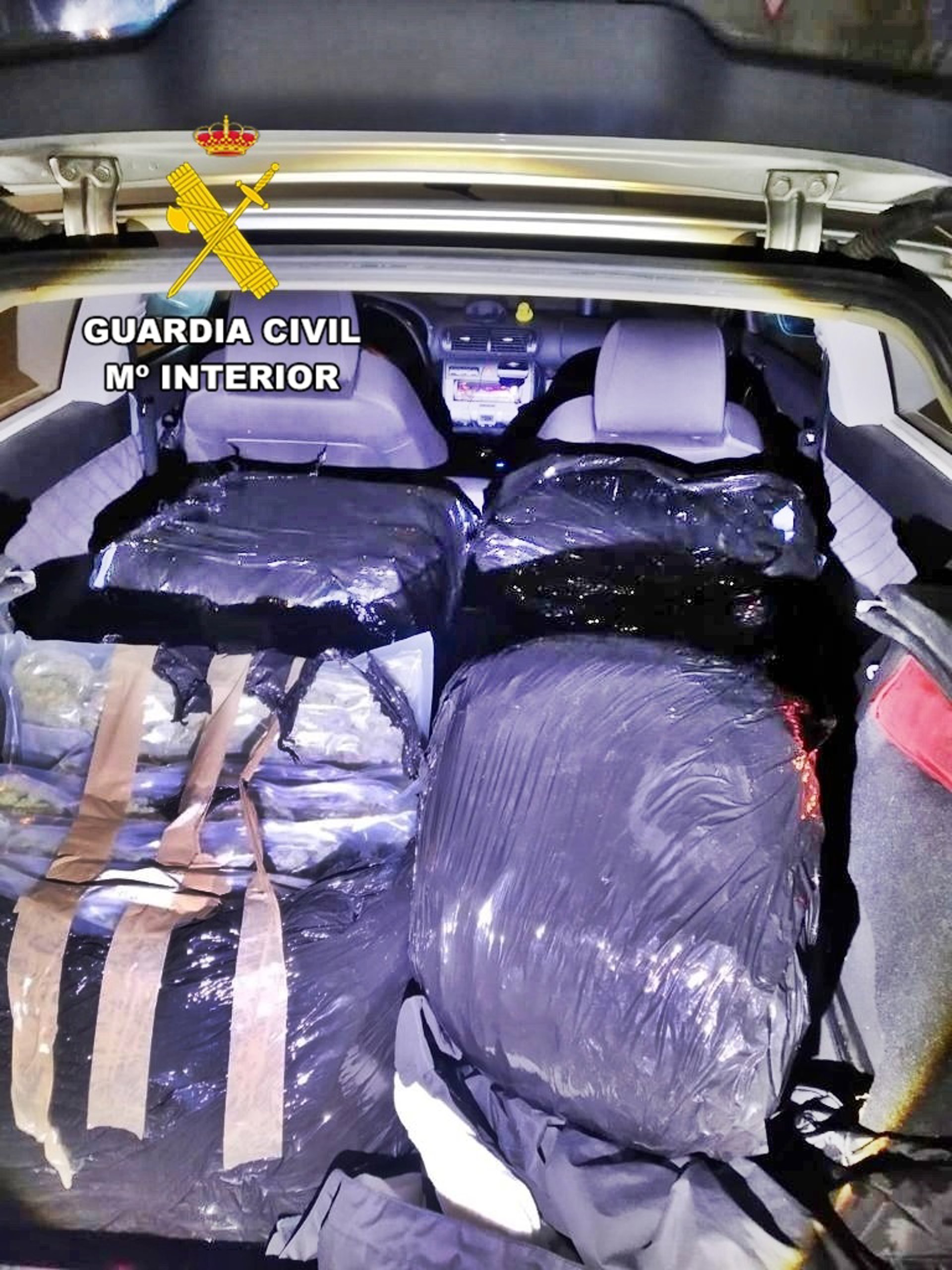 Los agentes decidieron inspeccionar la carga, en la que hallaron un total de 25.260 gramos de cogollos de marihuana, distribuida en bolsas y "perfectamente envasada al vacío con la intención de minimizar su olor", una droga de la que se podría obtener unas 76.500 dosis.