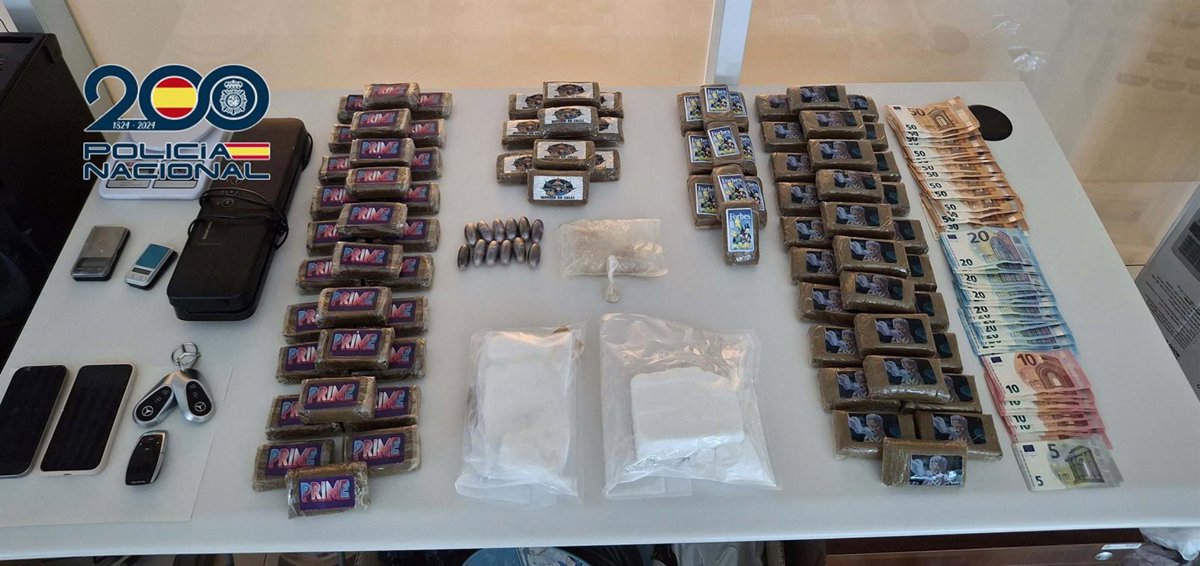 Con la preceptiva autorización, se llevó a cabo una entrada y registro en el domicilio de ambos, y se intervinieron finalmente un total de 927 gramos de cocaína, ocho kilos de hachís, 124 gramos de MDMA, más de 1700 euro, tres básculas de precisión, una envasadora, y múltiples bolsas de distintos tamaños.