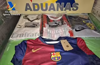 Camisetas de equipos de fútbol falsificadas intervenidas en la Feria de Zafra. - AGENCIA TRIBUTARIA