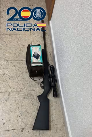 Posteriormente, los agentes detuvieron a otro hombre mientras sacaba varios efectos del domicilio del principal investigado, entre ellos un rifle con mira telescópica, una balanza de precisión y munición de diferentes calibres.