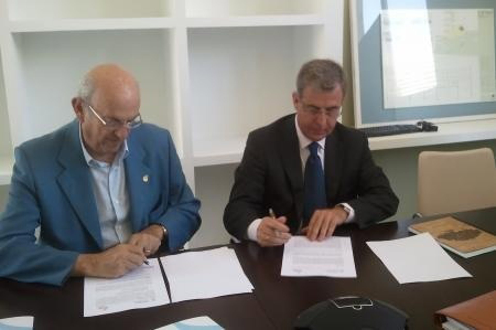 El presidente del Consejo Rector de Instituto Tecnológico de Rocas Ornamentales y Materiales de Construcción (Intromac), Germán Puebla Ovando, y el presidente del Patronato de la Fundación Centro Tecnológico Industrial de Extremadura (Cetiex), Jesús Mirat Celdrán, han firmado un convenio marco de colaboración con el fin de poder trabajar en iniciativas comunes.