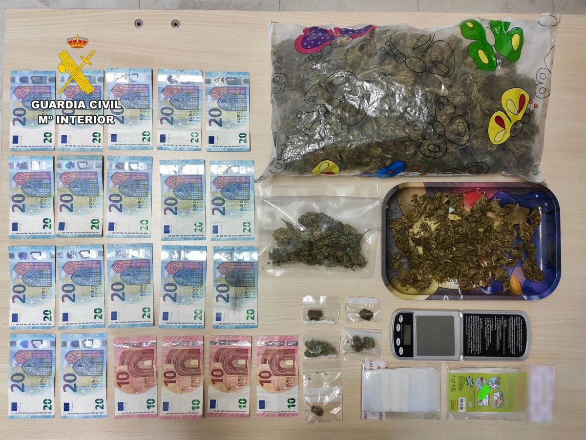 Tras estos hallazgos, los agentes procedieron a la incautación de la droga, el dinero y el material relacionado con el supuesto hecho delictivo, que suma en total 360 gramos de cogollos de marihuana, 5 gramos de hachís y 360 euros en metálico.
