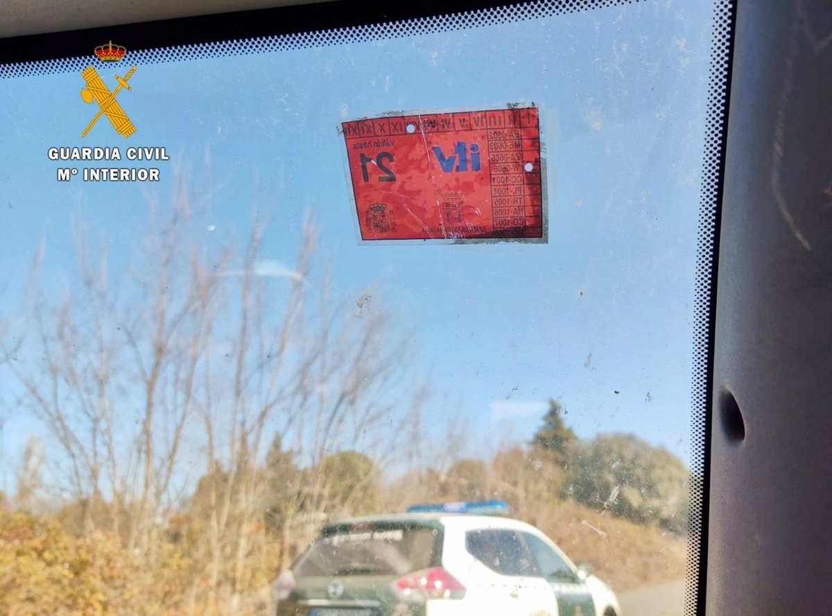 Tras proceder a dar el alto al vehículo los agentes comprobaron que, a pesar de constar en la base datos oficial de la Guardia Civil que el vehículo no disponía de la ITV en vigor, sí que llevaba puesta una pegatina de la ITV, de color rojo, correspondiente al año 2021, cuando, en realidad, la tenía caducada desde el mes de febrero del año 2020.