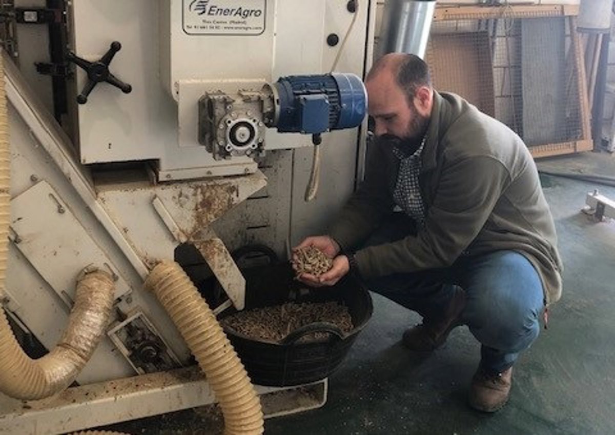 El investigador del Centro de Investigaciones Científicas y Tecnológicas de Extremadura (Cicytex) Luis Royano estudia el potencial de restos de poda de olivar, ciruelo y cultivos energéticos, Paulownia y Cynara, como biomasa para pélets de calderas.