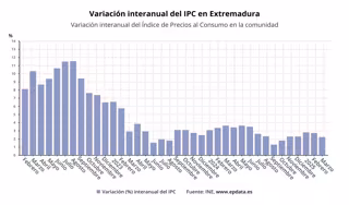El dato de marzo es el más bajo registrado en Extremadura desde octubre de 2024. En términos mensuales, la inflación en Extremadura aumentó un 0,1%, mientras que en lo que va de año la subida llega al 0,6%.