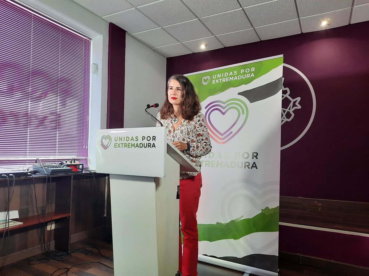 La candidata de Unidas por Extremadura a la Presidencia de la Junta, Irene de Miguel, en rueda de prensa en Mérida - EUROPA PRESS