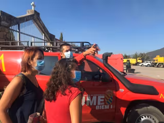 La portavoz de Unidas Por Extremadura, Irene de Miguel, y la diputada Lorena Rodríguez han acudido este domingo al puesto de mando avanzado del 112 de Extremadura en Aldeanueva de la Vera (Cáceres) para conocer de primera mano la evolución del incendio que está asolando las comarcas del Jerte y la Vera, que sigue sin estabilizar.