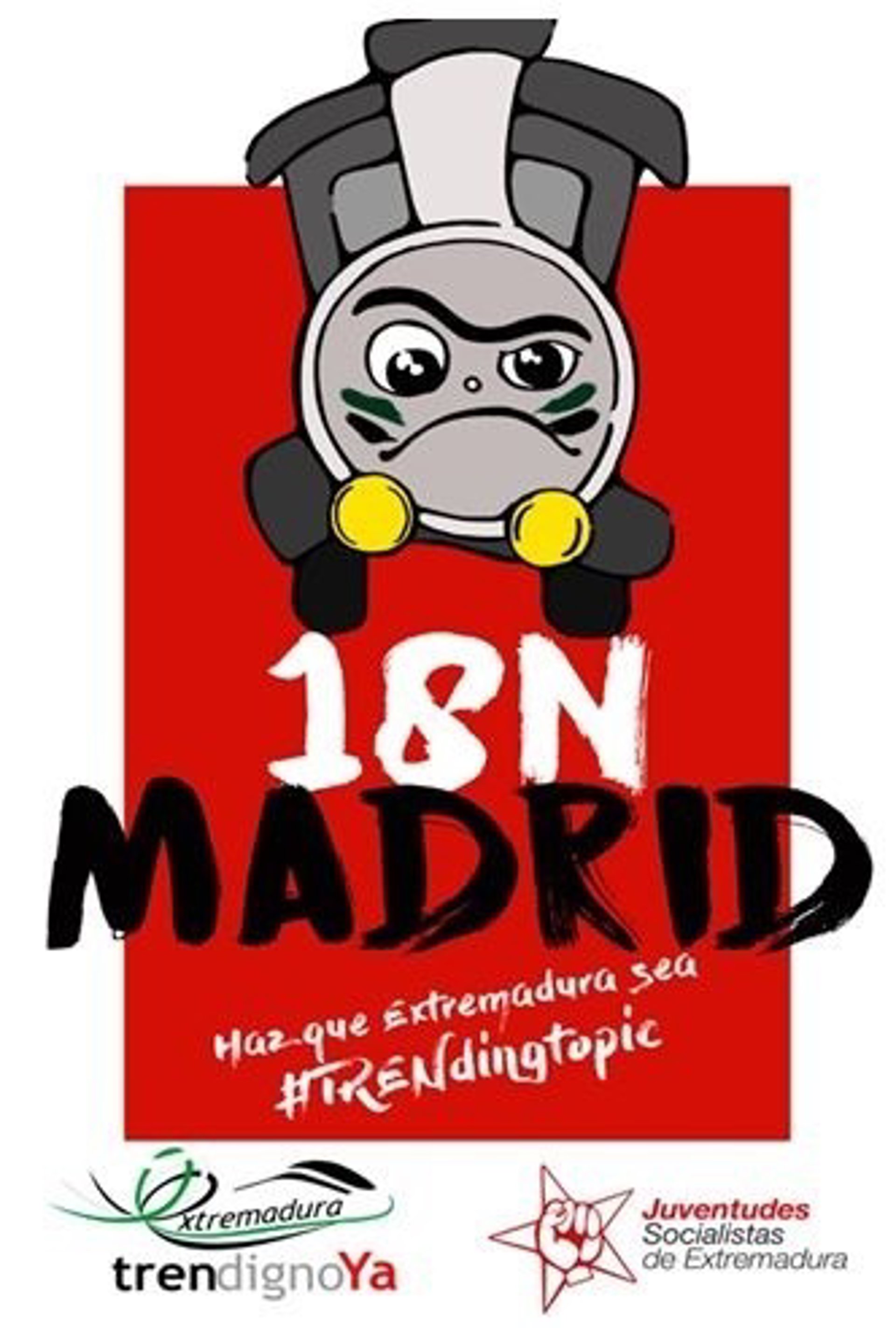 Juventudes Socialistas de Extremadura se ha sumado a la concentración por un tren digno que se celebrará este sábado, 18 de noviembre, en la Plaza de España de Madrid, para la que ha lanzado la campaña 'Haz que Extremadura sea #TRENdingtopic'.