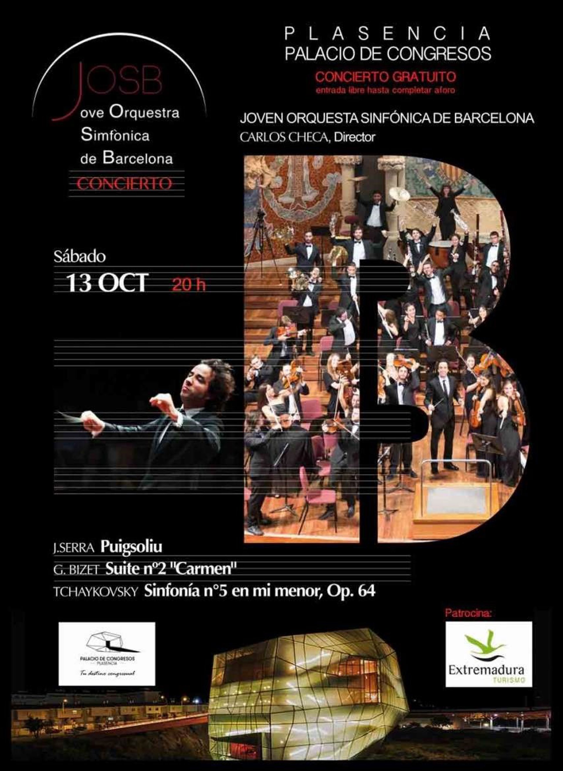 La Joven Orquesta Sinfónica de Barceloan (JOSB), dirigida por Carlos Checa y compuesta por 60 músicos, ofrecerá un concierto el próximo 13 de octubre en Plasencia (Cáceres), dentro de su primera gira por España desde su fundación en 2015.