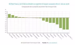 Si se compara por comunidades, en el cuarto trimestre de 2018 fue el País Vasco la región en la que más aumentó el número de 'ni-nis', con un 8,7 por ciento más que en el mismo trimestre de 2017.