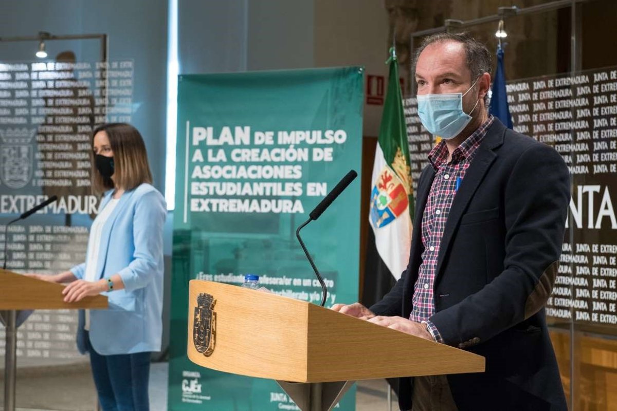 El director general de Innovación e Inclusión Educativa, Juan Pablo Venero, y la presidenta del Consejo de la Juventud de Extremadura (CJEx), Olga Tostado, han presentado este lunes en Mérida el nuevo Programa de Impulso para el Asociacionismo Estudiantil en centros educativos de Extremadura.