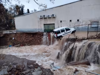 Un vehículo arrastrado por la riada en Jarandilla de la Vera - DIPUTACIÓN DE CÁCERES