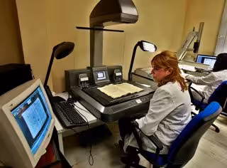 Una archivera digitaliza un documento. - DIPUTACIÓN DE BADAJOZ - Archivo
