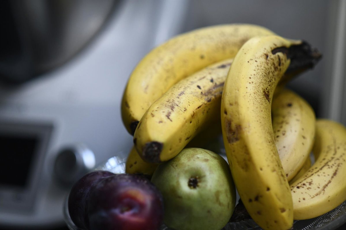 Bodegón de frutas en un plato (plátanos, ciruelas y peras). - Oscar Cañas - Europa Press - Archivo