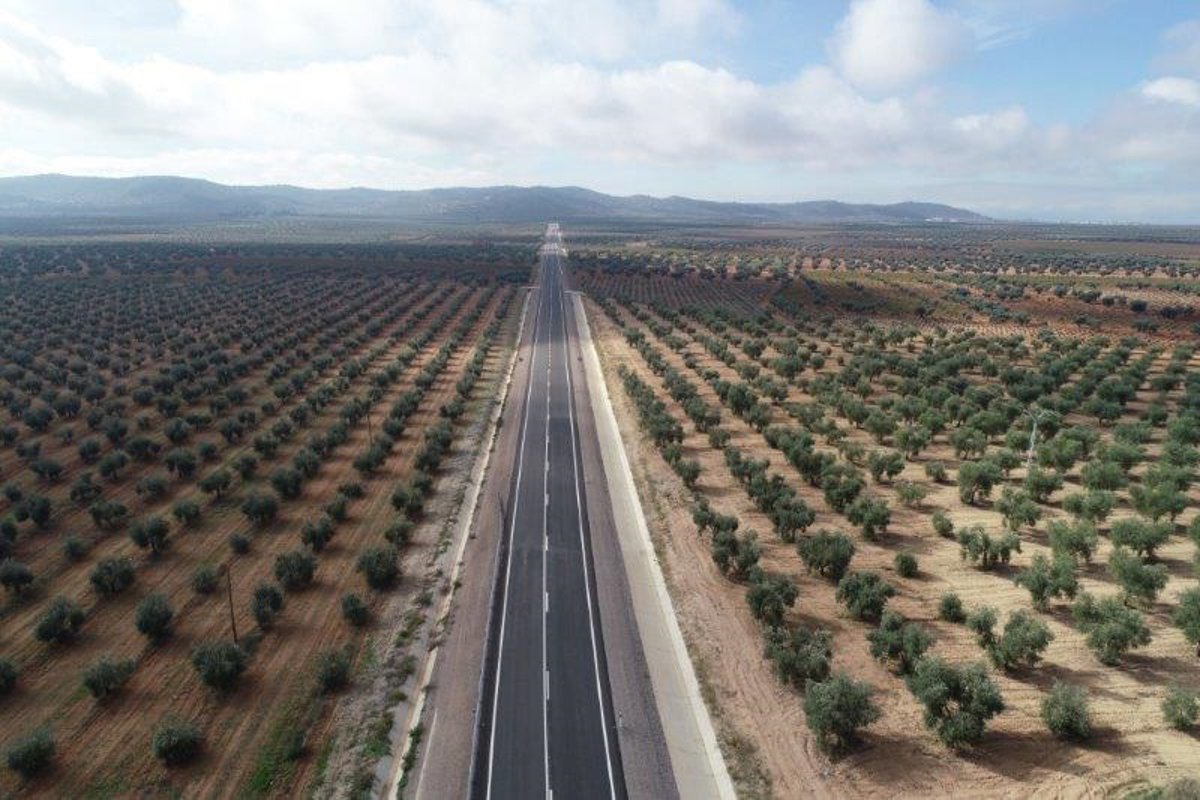 Imagen aérea de una carretera de Extremadura. - JUNTA