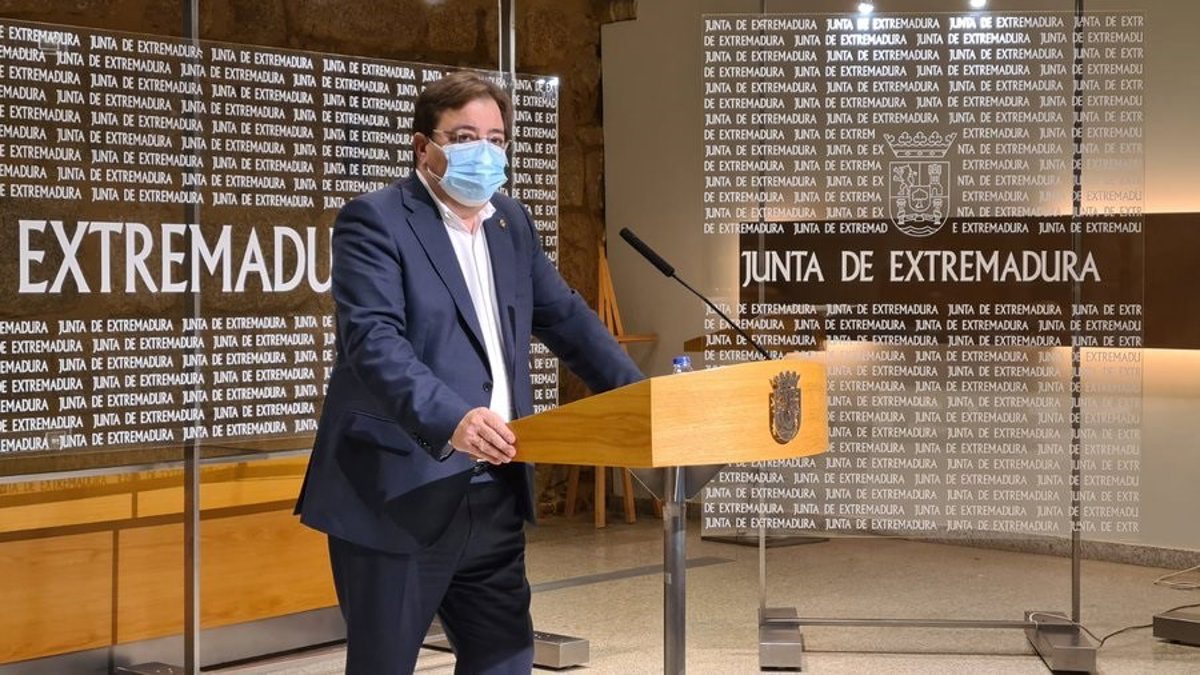 El presidente de la Junta de Extremadura, Guillermo Fernández Vara, en rueda de prensa en Mérida - JUNTA DE EXTREMADURA