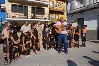 Entre los vecinos ha asistido un grupo de niños disfrazados de vetones que han querido reivindicar el origen de estos monumentos megalíticos así como el impulsor de esta iniciativa, Matías Simón, responsable de la Asociación 'Amigos de la Estatua del poeta Gabriel y Galán' que ha interpretado junto a los niños una canción compuesta por él y que está dedicada a estos peculiares símbolos de su pueblo natal.