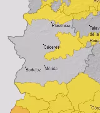 Además, el norte de Cáceres también estará en alerta amarilla por vientos entre las 8,00 y las 20,00 horas de este jueves, cuando podrán alcanzar rachas de hasta 80 kilómetros por hora.