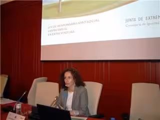 En su intervención, ha explicado los principios de la Ley de Responsabilidad Social Empresarial (RSE) de Extremadura, la primera normativa que regula esta materia en España y en Europa.