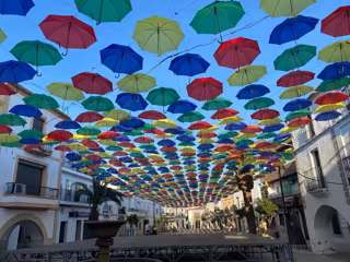 Por noveno año consecutivo, desde que surgiese la idea en 2014, 'la plaza de los paraguas' alberga más de 1.500 metros cuadrados cubiertos por paraguas azules, amarillos, rojos y verdes, que conforman una imagen icónica de la localidad que se viraliza en redes sociales cada año a través de miles de fotografías de visitantes.