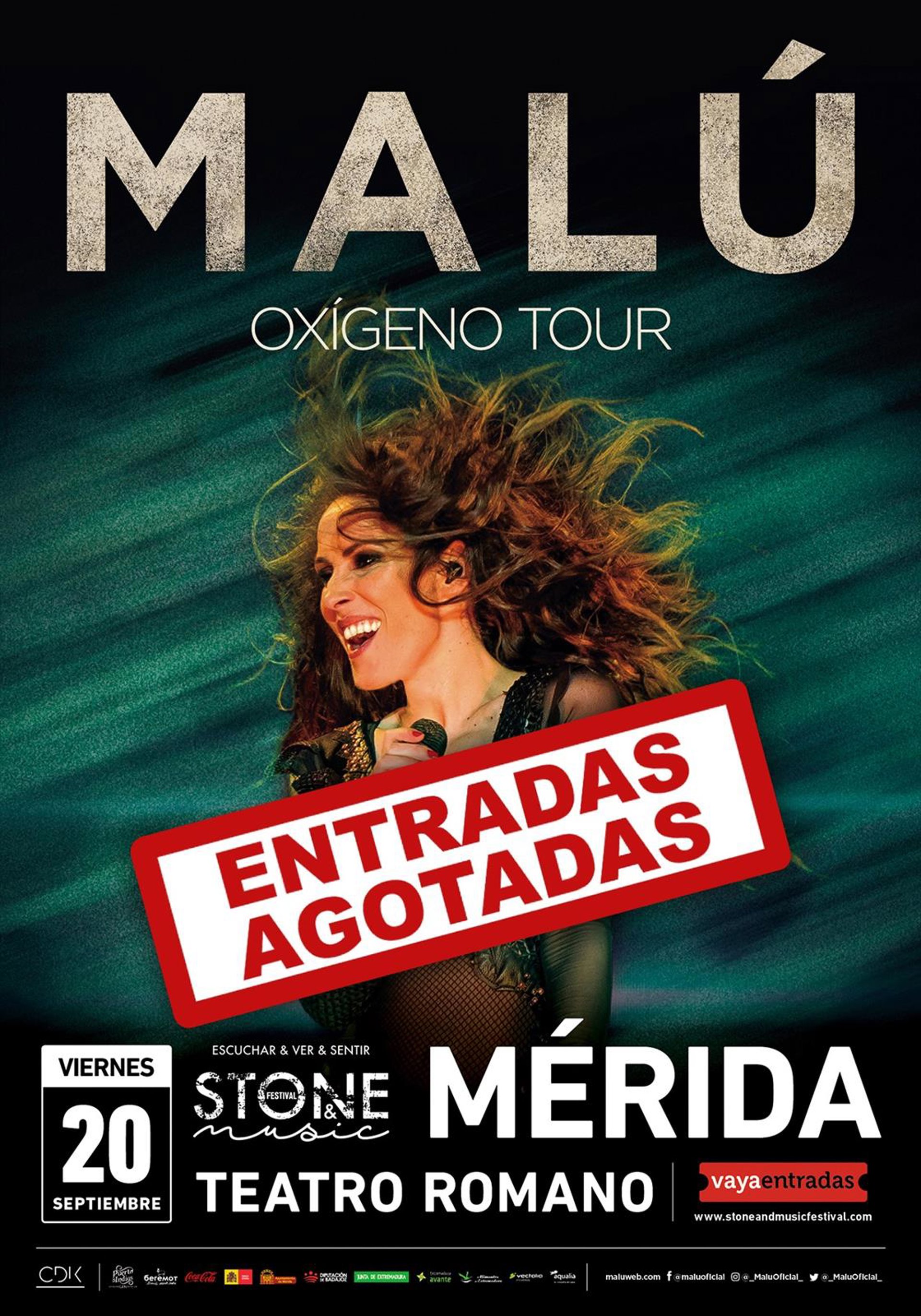 La cantante Malú ha agotado las entradas para su concierto en el Stone&Music Festival, incluido en su gira 'Oxigeno Tour', y que tendrá lugar el próximo 20 de septiembre en el Teatro Romano de Mérida.