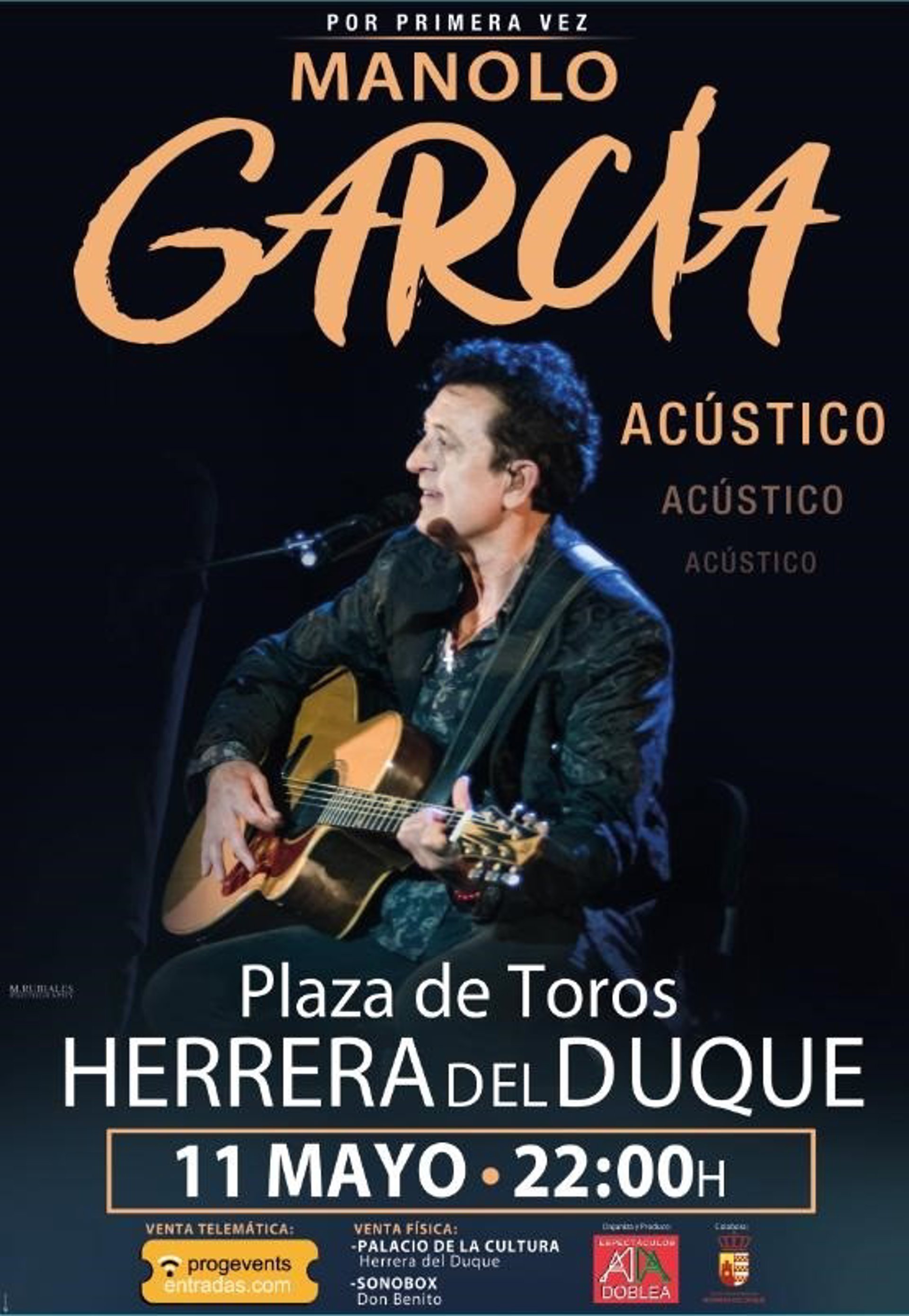 El cantautor Manolo García ofrecerá un concierto en la Plaza de Toros de Herrera del Duque (Badajoz) el 11 de mayo de 2019, cuyas entradas se pondrán a la venta este viernes.