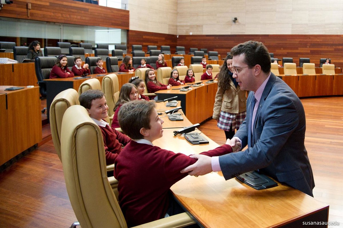 El presidente del Parlamento de Extremadura, Fernando Manzano, ha explicado a un grupo de alumnos de un colegio de Trujillo (Cáceres) las funciones y la organización de la Cámara legislativa regional.