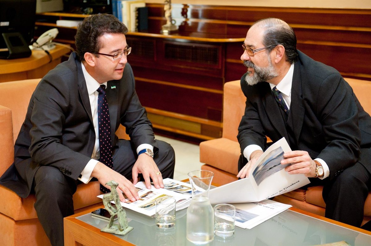 Manzano ha recibido este viernes al director Comercial y de Comunicación de Gecobesa, empresa gestora de la Estación de Esquí de la Covatilla, Alberto Segade, quien ha presentado los acuerdos aprobados en plenos municipales de los ayuntamientos extremeños de la zona para instar a las instituciones autonómicas a que impulsen esta actividad empresarial.