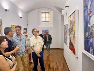 Así, Poblador hace un recorrido por algunas de las obras más significativas de Chagall, un artista expresivo y colorista. "Podemos contemplar la calidad de Poblador, que pinta con una fidelidad asombrosa las obras originales", ha dicho Suárez.