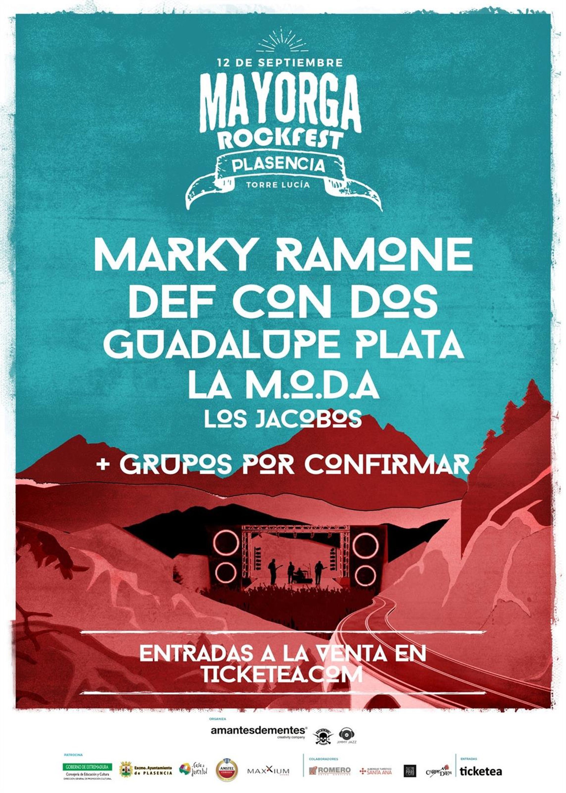 La tercera edición del festival 'Mayorga RockFest' que tendrá lugar el sábado 12 de septiembre en la ciudad de Plasencia en el recinto amurallado del siglo XII 'Torre de Lucía', tiene confirmadas ya algunas bandas que son 'Marky Ramone', 'La Moda', 'Def Con Dos', 'Guadalupe Plata' y 'Los Jacobos', aunque los cabezas de cartel se anunciarán el próximo 15 de junio.