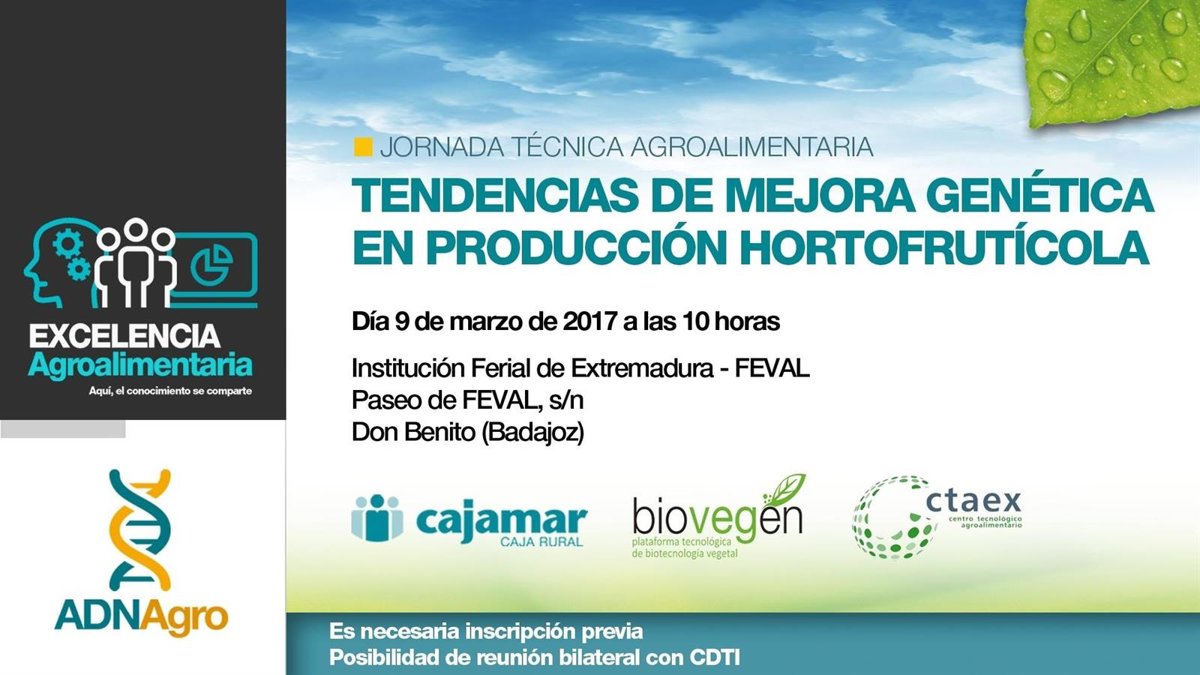 El desarrollo de tecnologías procedentes de la biología vegetal, como la mejora genética, resultan de "vital importancia" para la mejora de la competitividad del sector hortofrutícola, según ha explicado en nota de prensa el Centro Tecnológico Agroalimentario de Extremadura (Ctaex), que organiza la cita junto a Cajamar y Biovegen.
