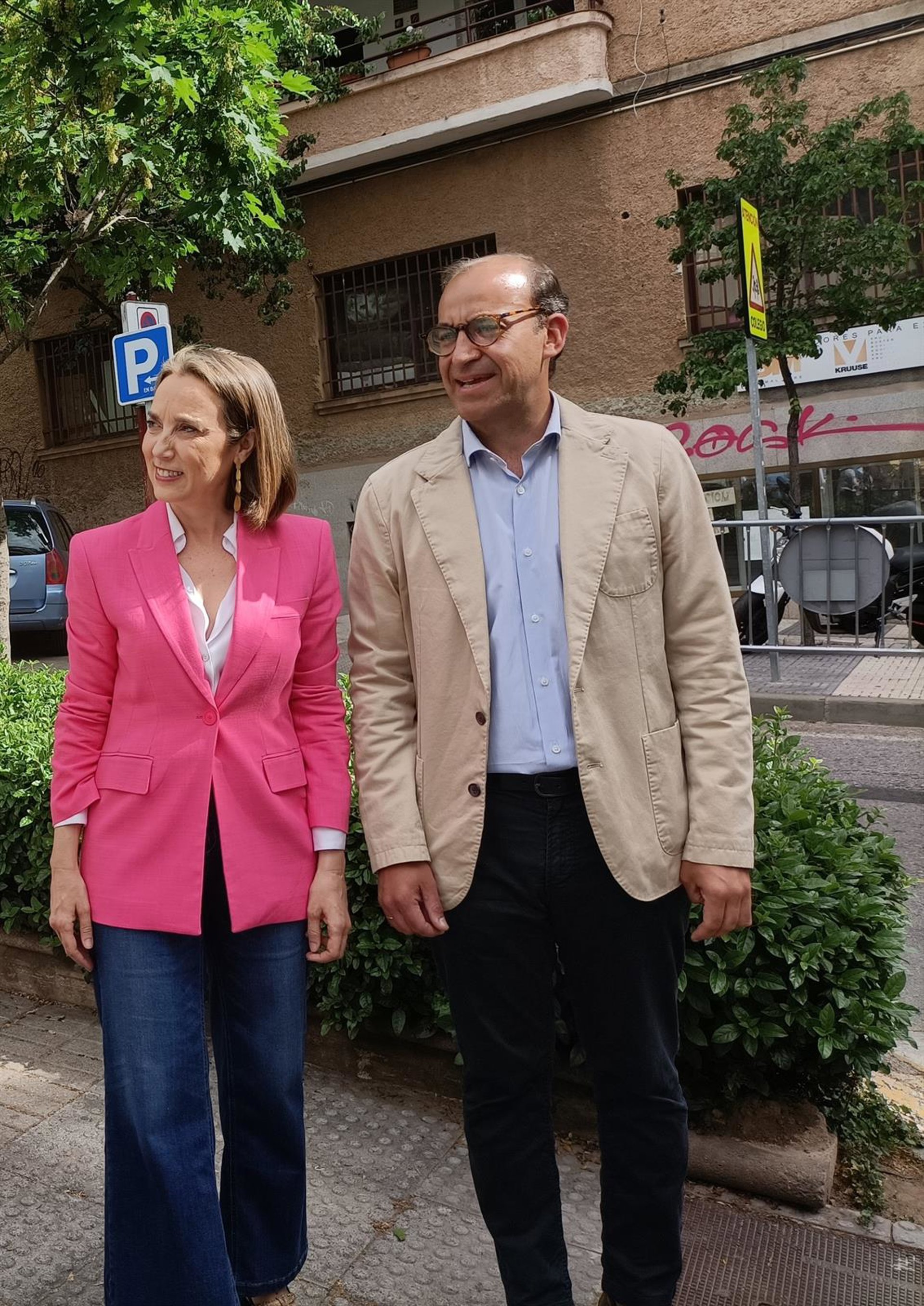 La secretaria general del PP, Cuca Gamarra, y el candidato del PP a la Alcaldía de Cáceres, Rafael Mateos - EUROPA PRESS