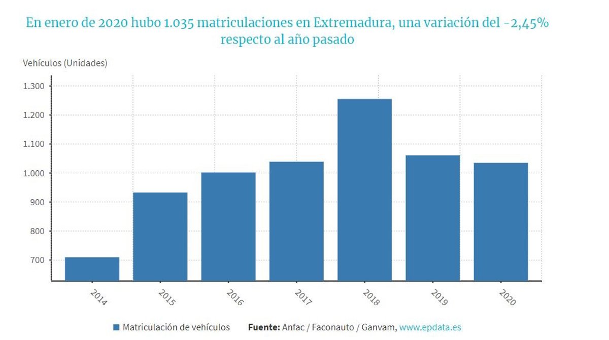 Matriculaciones enero en Extremadura - EPDATA