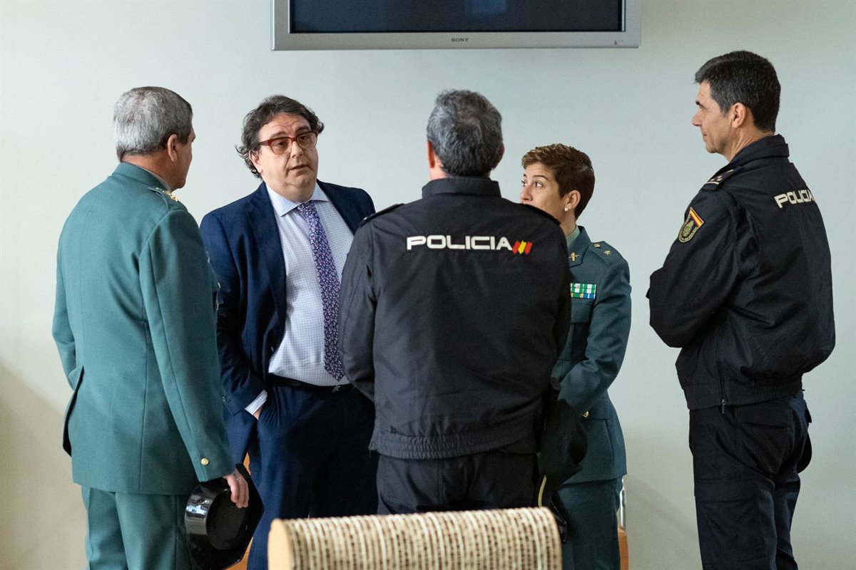 El consejero de Sanidad, José María Vergeles, comparte impresiones con policías y guardias civiles. - JUNTA