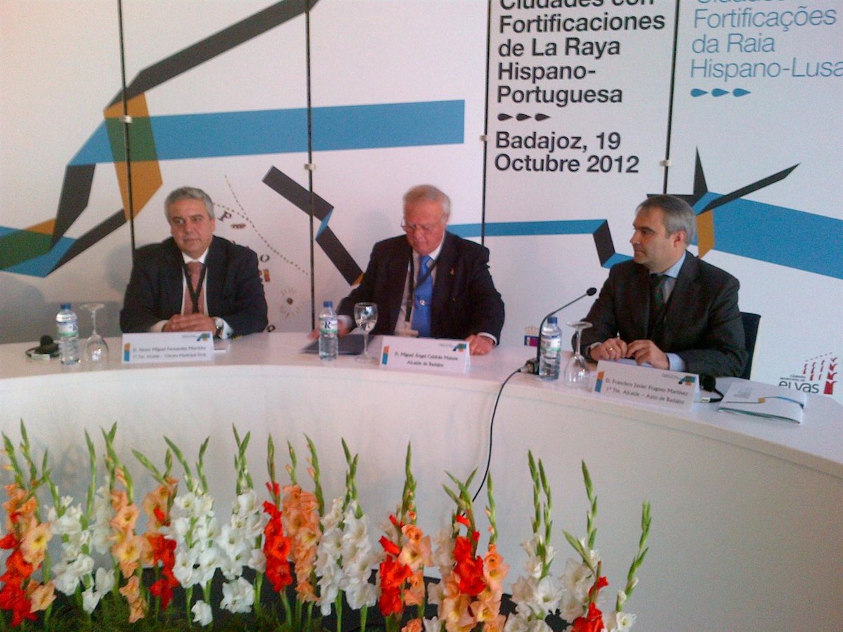 El alcalde de Badajoz, Miguel Celdrán, ha inaugurado este foro que, bajo el título 'Encuentro de responsables municipales de ciudades con fortificaciones de la raya hispano portuguesa', ha reunido a ciudades fortificadas situadas desde el norte de Portugal y Galicia hasta Huelva pasando por Castilla León y Extremadura, como Ciudad Rodrigo, Almeida, Castelo de Vide, Monçao, Ledesma, Valencia de Alcántara, Olivenza o Tomiño.