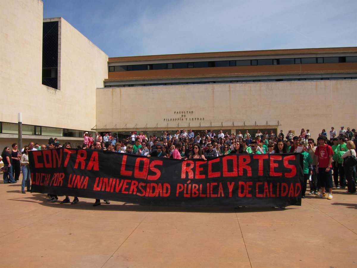La concentración, convocada por los sindicatos CSI-F, UGT, CCOO y la organización estudiantil AL-CAMPUS, ha tenido lugar en la explanada de la Facultad de Filosofía y Letras, y se ha desarrollado en el marco de la jornada de huelga en la enseñanza pública que se ha convocado a nivel nacional, y como preámbulo a las manifestaciones que tendrán lugar esta tarde, a partir de las 19,00 horas, en Badajoz y Cáceres, al igual que en otras ciudades españolas.