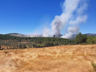 El incendio se ha declarado este lunes en una zona de pinar, en la que trabajan varios medios aéreos del Plan Infoex y el Ministerio de Agricultura, con la colaboración de retenes terrestres, Diputación de Cáceres y Agentes del Medio Natural, según los datos aportados por la Junta de Extremadura.
