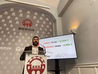 La ciudad de Mérida ha registrado este pasado año 2025 un total de 271.962 viajeros, lo que supone un aumento del 13,31 por ciento respecto del ejercicio anterior, así como 430.860 pernoctaciones, esto es, un 4,96 por ciento más que en 2024.