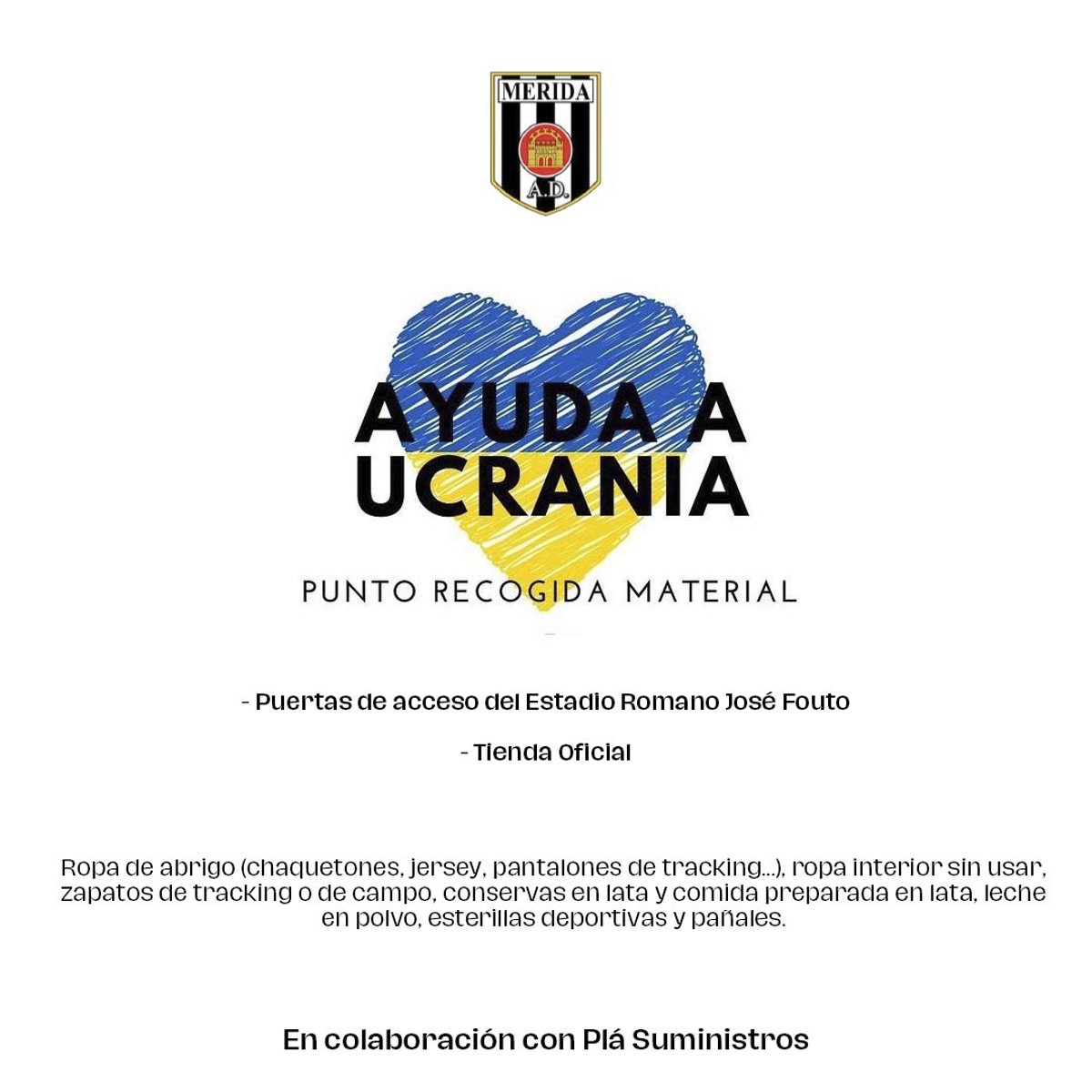 La Asociación Deportiva Mérida SAD, equipo de fútbol de la capital extremeña que juega en Segunda RFEF, ha organizado una recogida solidaria de material destinado al pueblo ucraniano.