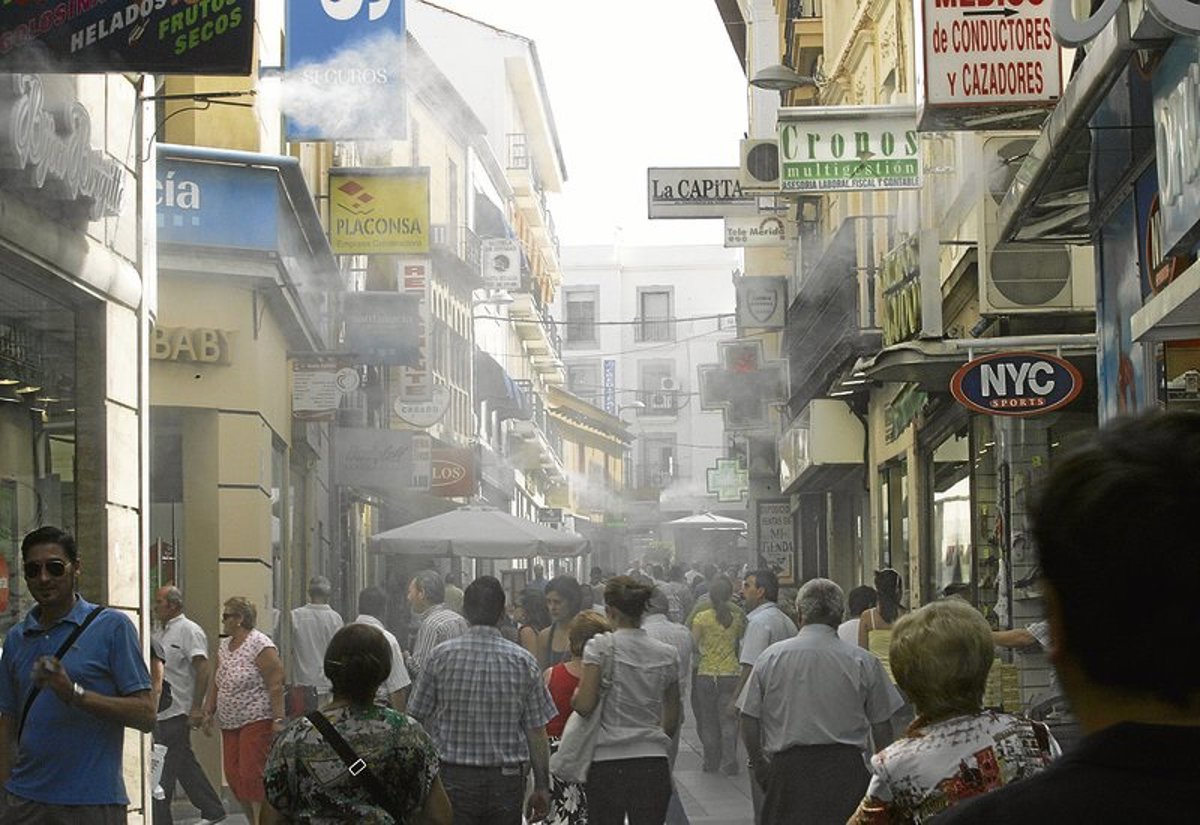 El microclima de las calles comerciales del centro de Mérida funciona durante ocho horas diarias, con un horario de 12,30 a 20,30 horas siempre y cuando las temperaturas estén por encima de los 27 grados centígrados.
